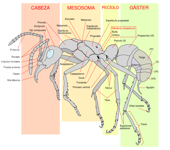 Los huevos en las colonias son depositados por una o más hormigas reina y la mayoría de éstos eclosionan y crecen para convertirse en hembras no aladas llamadas "obreras".